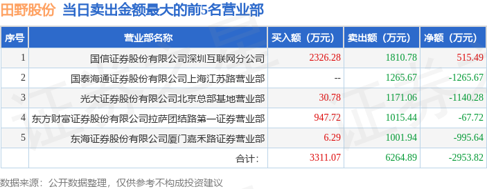 截至2025年12月23日收盘,田野股份(920023)报收于5.22元,下跌11.68%,换手率42.16%,成交量113.33万手,成交额6.64亿元。