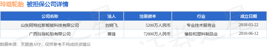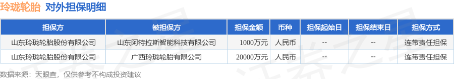 玲珑轮胎12月24日披露2笔对外担保,被担保公司2家。对外担保明细如下表: