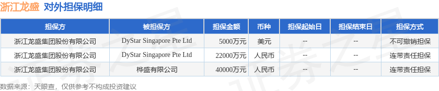 浙江龙盛12月24日披露3笔对外担保,被担保公司2家。对外担保明细如下表: