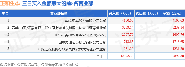 证券之星消息,沪深交易所2025年12月30日公布的交易公开信息显示,正和生态(605069)因非ST、*ST和S证券连续三个交易日内收盘价格涨幅偏离值累计达到20%的证券,有价格涨跌幅限制的日换手率达到20%的前五只证券登上龙虎榜。此次是近5个交易日内第3次上榜。
