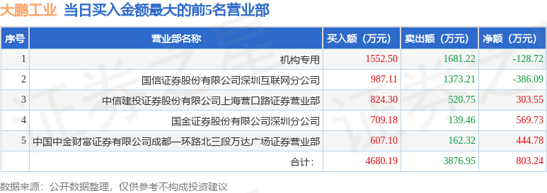 证券之星消息,沪深交易所2025年12月30日公布的交易公开信息显示,大鹏工业(920091)因当日换手率达到20%的前5只股票登上龙虎榜。此次是近5个交易日内第5次上榜。