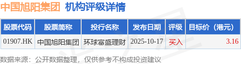 截至2025年12月30日收盘,中国旭阳集团(01907.HK)报收于2.26港元,下跌0.88%,成交量583.0万股,成交额1322.01万港元。投行对该股的评级以买入为主,近90天内共有1家投行给出买入评级,近90天的目标均价为3.16港元。环球富盛理财最新一份研报给予中国旭阳集团买入评级,目标价3.16港元。