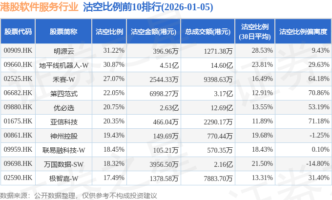 由于港股人民币柜台交易股票成交金额较小,沽空比例普遍偏高,为了避免干扰,已将人民币柜台交易股票从排行表格中剔除。