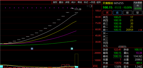 天普股份(605255)复牌一字跌停。此前,天普股份股票价格于8月22日到9月23日连续15个交易日涨停,累计上涨317.72%。