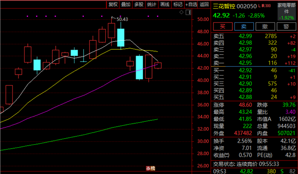 此外,值得注意的是,昨日涨停的三花智控(002050)今日低开。