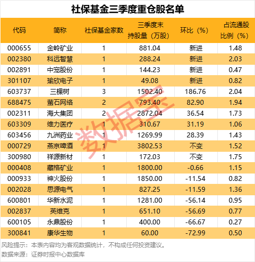 社保基金三季度重仓股:新进4股,增持5股