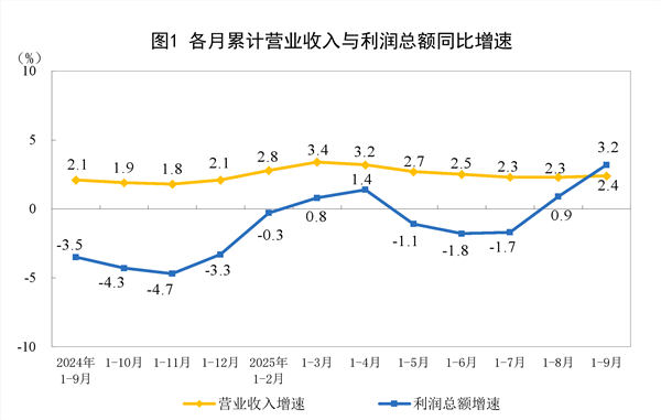 (原标题:2025年1—9月份全国规模以上工业企业利润增长3.2%)