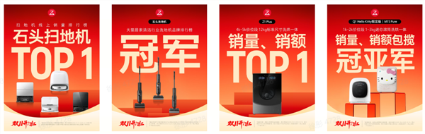 在海外市场取得亮眼成绩的同时,在国内市场也保持着积极的增长,并在近期的双十一大促中取得开门红的好成绩。石头全品类产品斩获多个榜单TOP1。