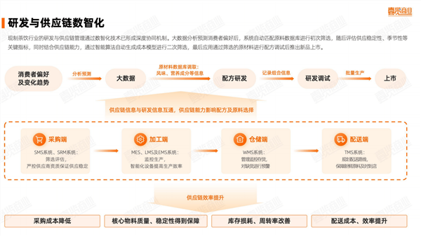 头部品牌通常以市场分析为起点,依托庞大的数据体系捕捉消费者口味变化,再通过原料筛选、配方验证、小范围试点等环节,逐步形成可规模化的新品;一旦上市反响良好,便会迅速反哺供应链端,推动中小品牌在原料与配方层面跟进,实现“从研发到量产”的快速复制。