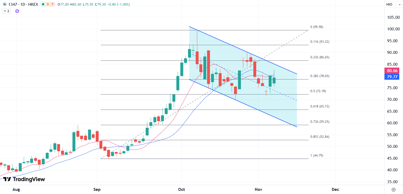 高盛最新报告指出,随着中国半导体产业的系统性重估持续深化,华虹有望在未来的市场竞争中脱颖而出,成为国产芯片代工领域的重要力量。如果公司能持续兑现甚至超越其业绩指引,证明盈利能力的修复是可持续的,那么其估值就有望得到修复和提升。当前股价处于70至100港元之间的宽幅震荡,技术上维持近期下行通道内,还将继续跟随地缘政治和市场情绪维持波动,如果继续维持日图均线下方,则关注通道底部的关键支撑。