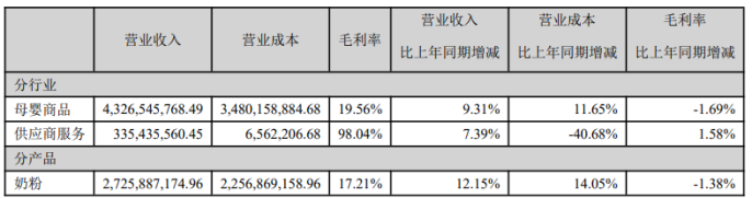 今年上半年,孩子王奶粉毛利率同比下降1.38个百分点至17.21%,甚至不及2022年同期水平。受其影响,母婴商品的毛利率同比下降1.69个百分点至19.56%。
