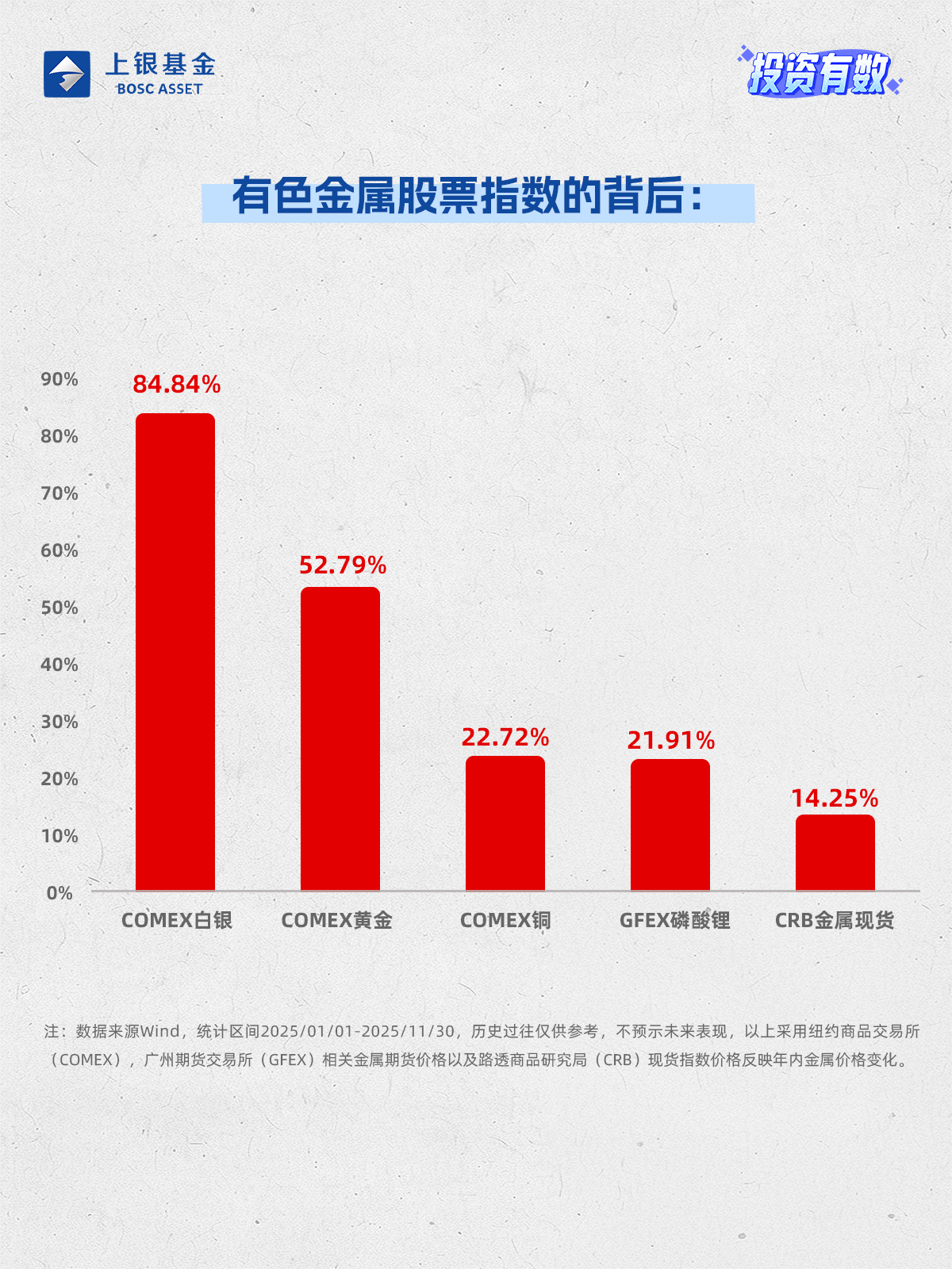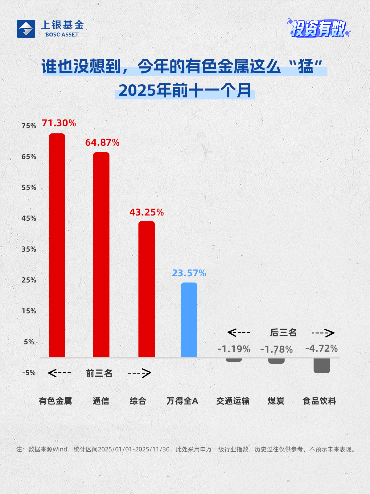 图1:2025年即将走过,谁也没预料到的是:A股领涨行业居然不是势头正盛的TMT相关,反而是被市场视为传统行业的有色金属!