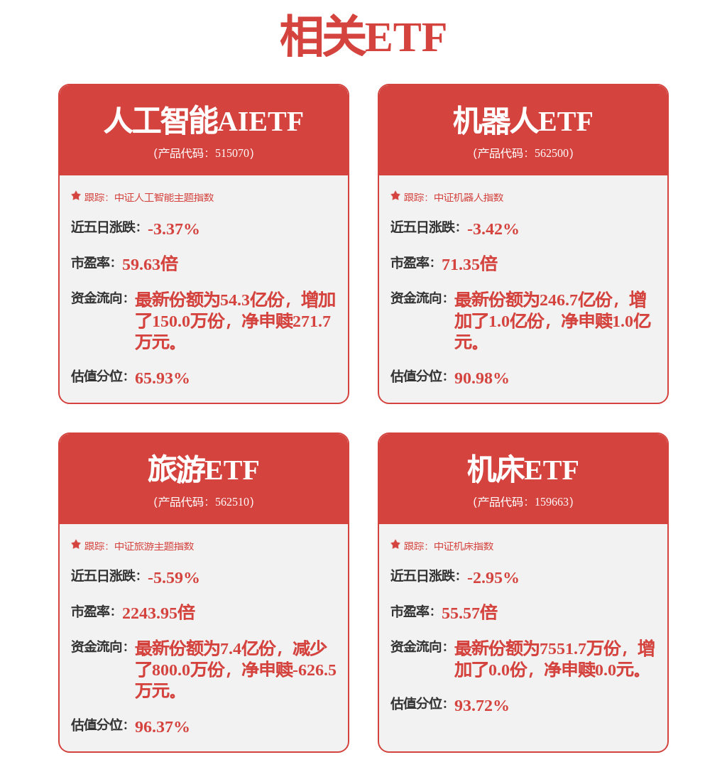 12月22日,三大股指午后持续拉升,其中机床板块大幅上涨。截至下午13:50,机床ETF(159663)涨3.10%,相关成分股中,华工科技涨6.24%、大族激光涨3.89%、绿的谐波涨3.88%,创世纪、江特电机、汇川技术等小幅跟涨。(以上所列股票仅为指数成份股,无特定推荐之意)