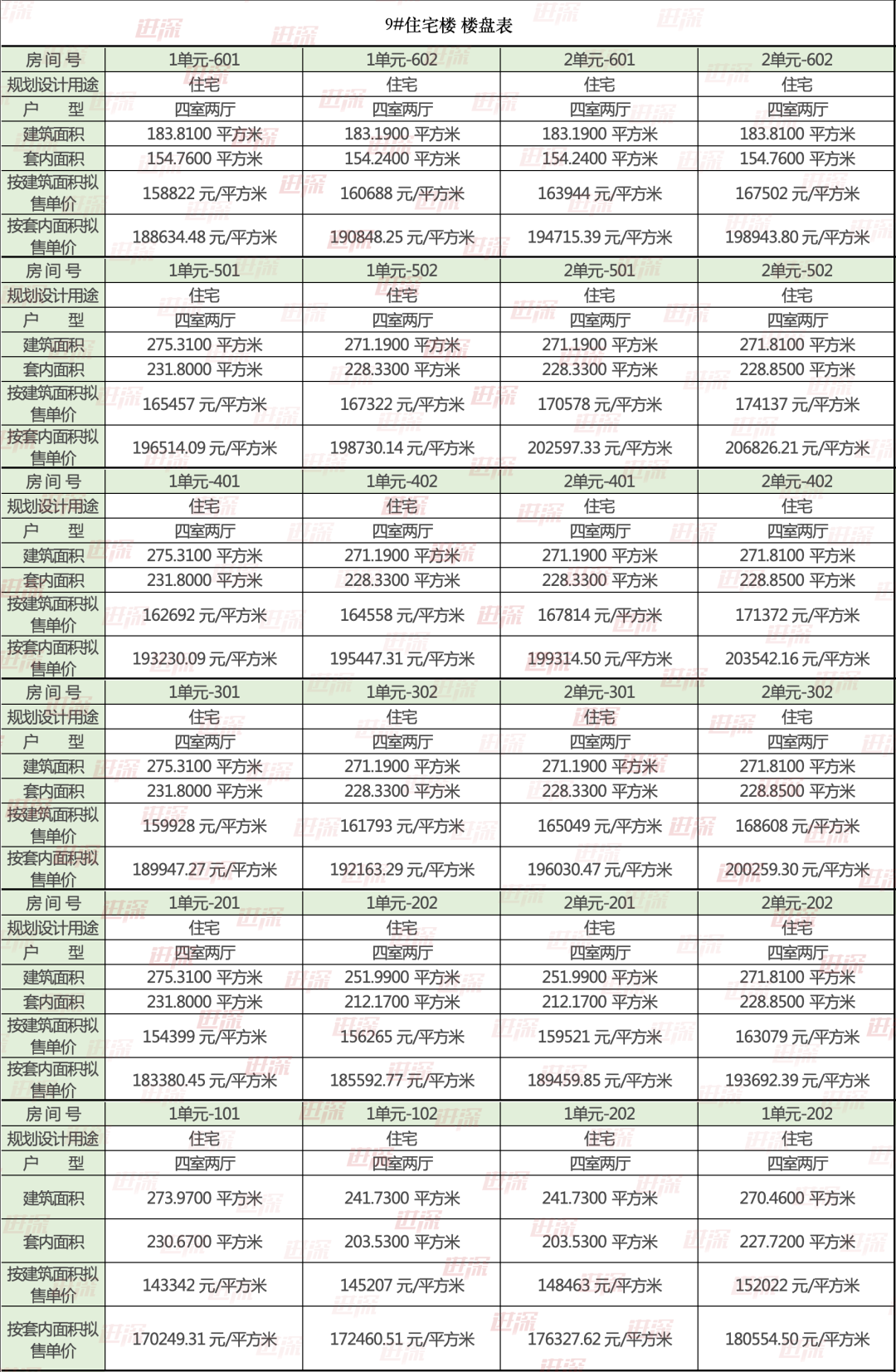 9#-14#楼均为两梯两户,主力面积275/270㎡;