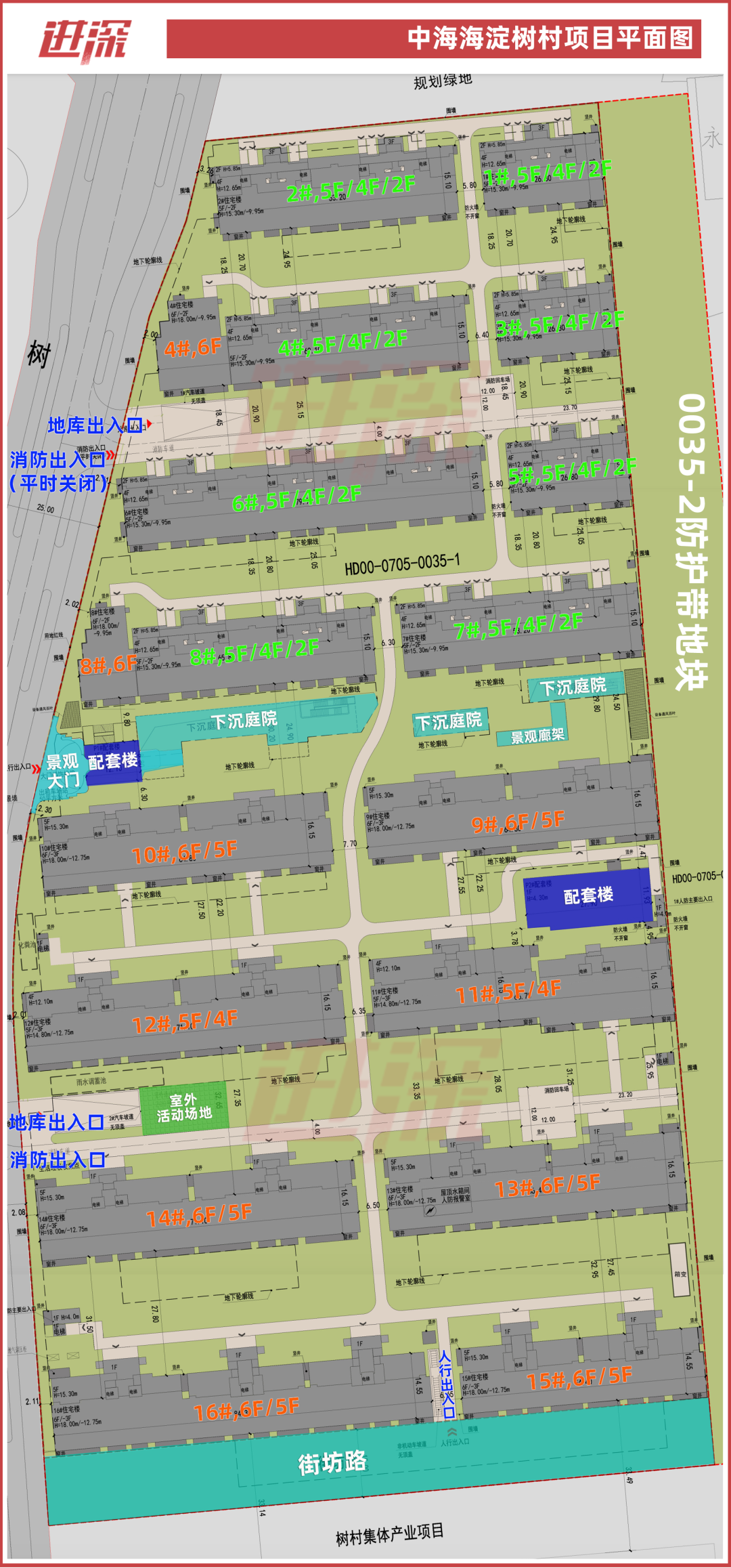 楼栋两两一排,下沉庭院+景观连廊横贯小区腰部,将小区一分为二,南北各8栋楼。