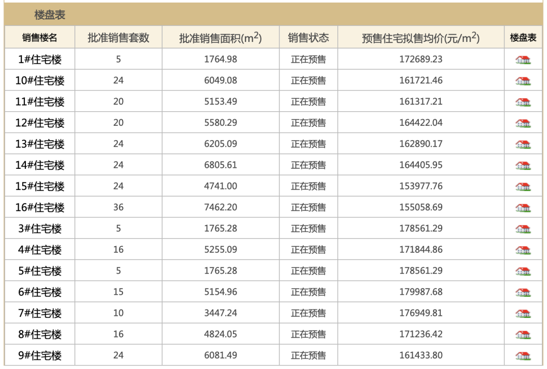 预售均价16.55万元/㎡,货值总计119.28亿元。