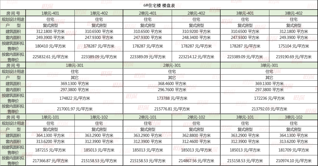 其中6# 楼预售均价约18万元/㎡,下叠户型单价接近19万。