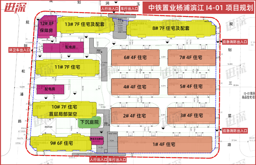 根据方案,地块拟建12栋4-7F住宅产品,东侧为7栋4F住宅,以及1栋7F住宅;西侧为4栋6-7F住宅产品,以及西北角1栋8F保障房。