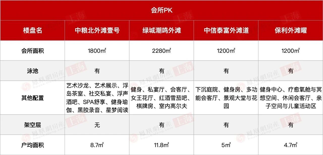 会所是豪宅的“第二客厅”,也是圈层生活的实体场域。四个项目都配有会所,但面积、功能、户均占比差距很大: