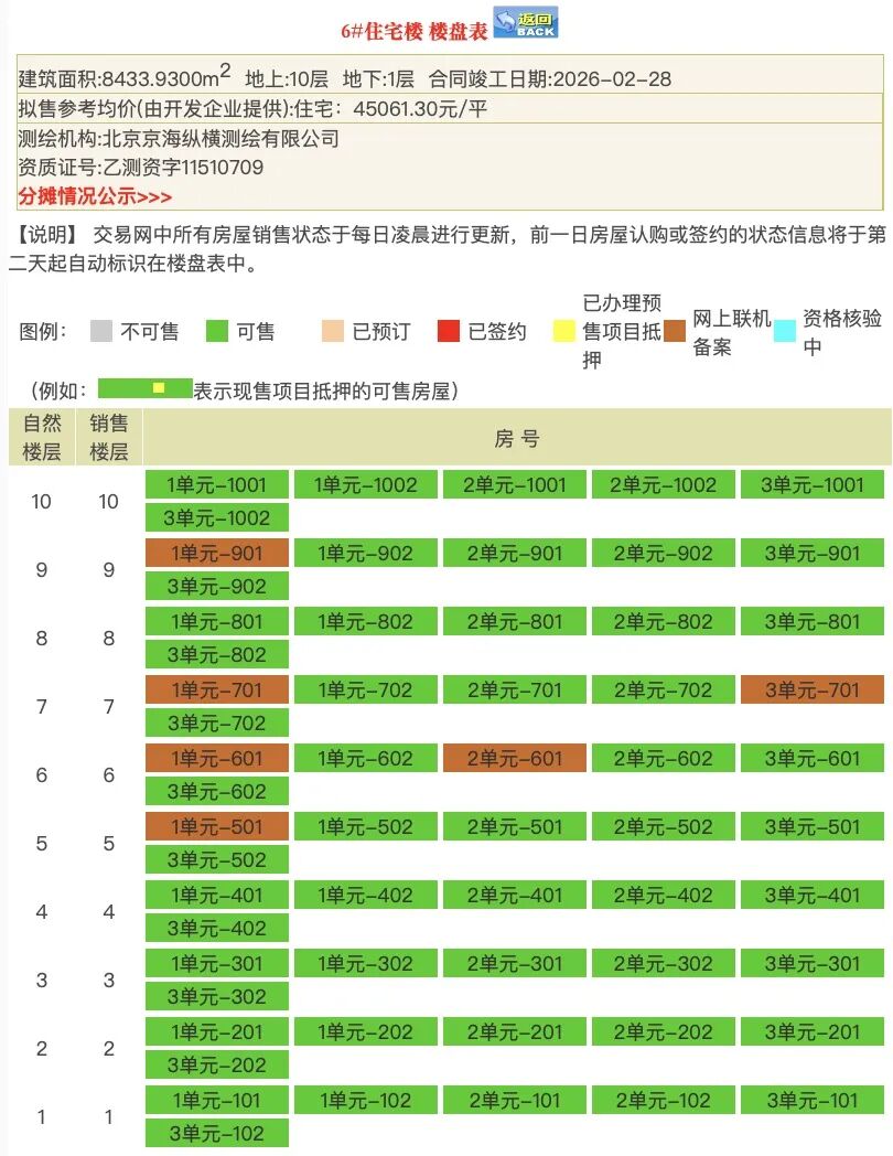6#,共计54套128㎡户型的房源,目前仅有6套网上联机备案。