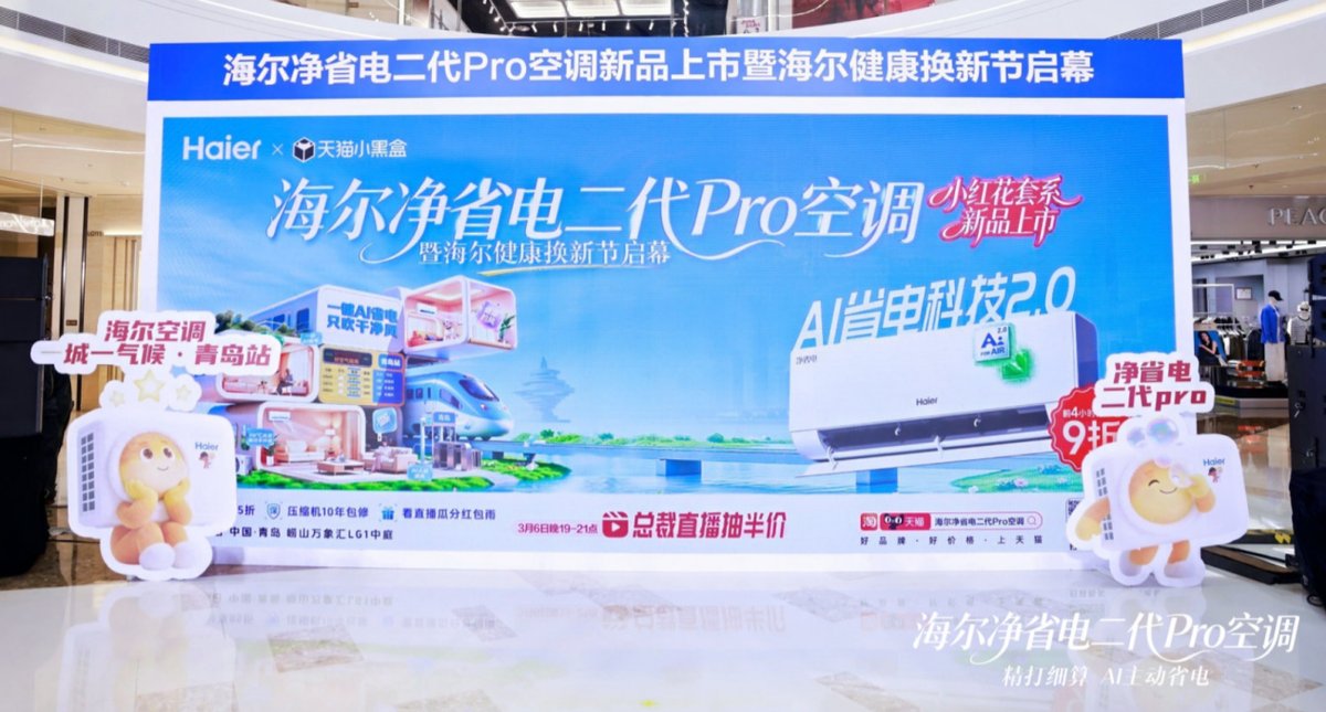3月6日,海尔空调“一城一气候”活动走进青岛,发布海尔净省电二代Pro空调。这款新品通过建立AI主动省电、长效省电、硬件省电三重保障,实现制冷省电53%的突破,让节能在海尔智慧家庭中,变成一件无需惦记的小事。