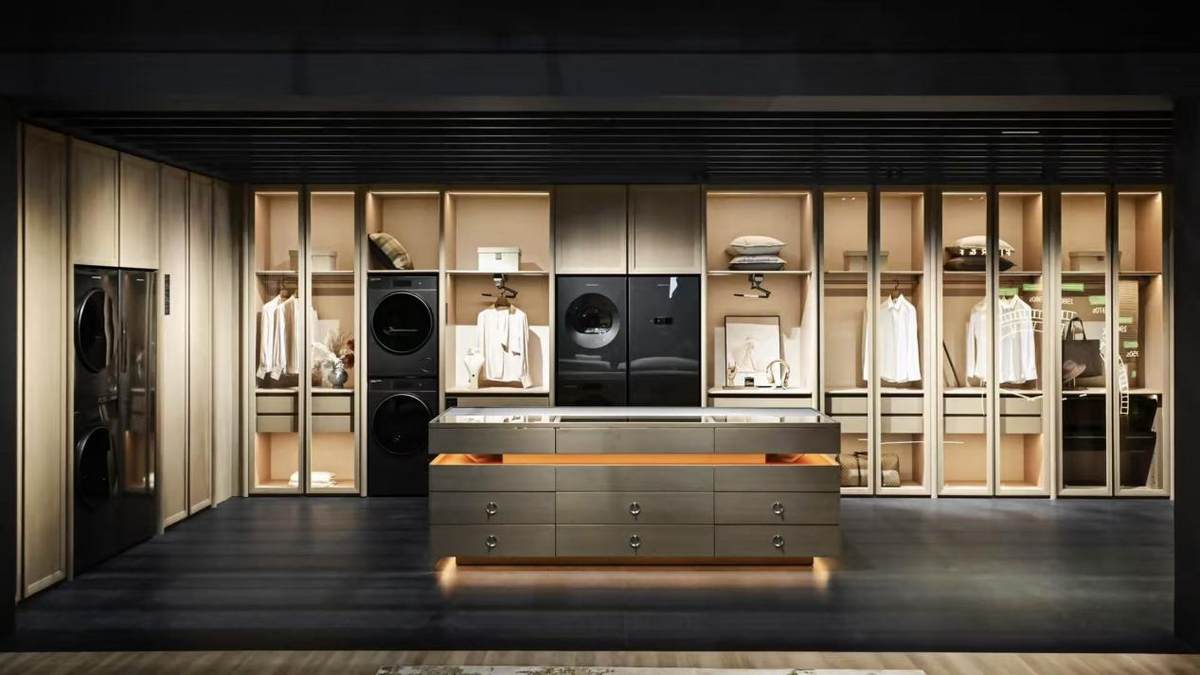这套方案覆盖了高端衣物护理的全流程。需要彻底清洗的衣物,洗衣机的智慧洗功能可以智能检测衣物重量和脏污程度,精准投放洗涤剂;不需要水洗时,蒸汽焕新功能可进行免水洗护理,快速祛味除尘。干衣机具备防缠绕技术,能柔和烘干羊毛、真丝等娇贵面料,保持衣物蓬松平整。衣物护理柜则整合了祛味、除菌、清新等专业护理功能,为西装、皮草等贵重衣物提供便捷的专业级居家护理。