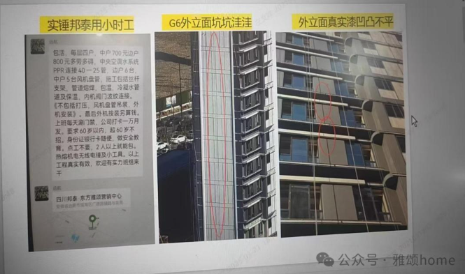 不过更让邦泰东方雅颂出圈的是业主一封《檄四川邦泰书:东方雅颂业主泣血陈情,誓捍家园》的文言文投诉书。项目业主自2024年开始多轮维权,主要围绕实景示范区多处不符预期、架空层等处材料等级较低、工地开放日延迟等楼盘质量问题。