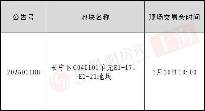 3月27日,上海土地交易市场发布公告,该批次唯一一幅宅地将于3月30日上午10时进行现场交易。届时,凤凰网房产上海将全程直播,敬请关注。