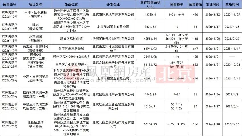 北京3月获预售证项目一览