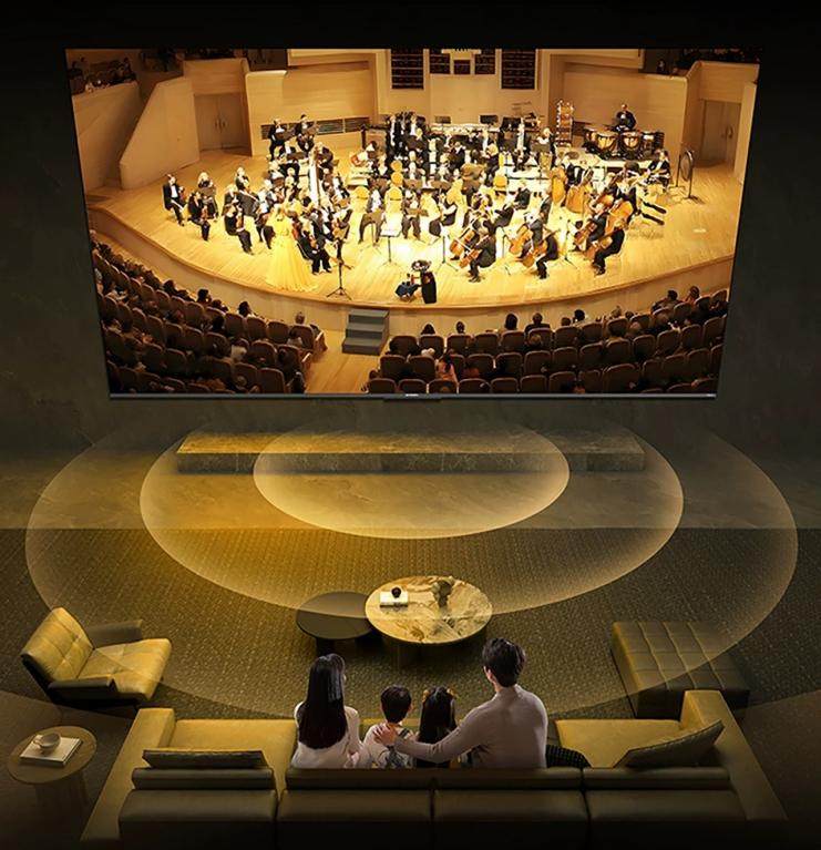 第一、尺寸匹配是基础。洋房客厅开间多在 4 米以上,观看距离基本≥3.5 米,按「观看距离 ×100÷1.5」的匹配公式,百吋是黄金尺寸,既不会有小屏的局促感,又能保证观影的沉浸感,30㎡以上的阳光横厅适配度满分。