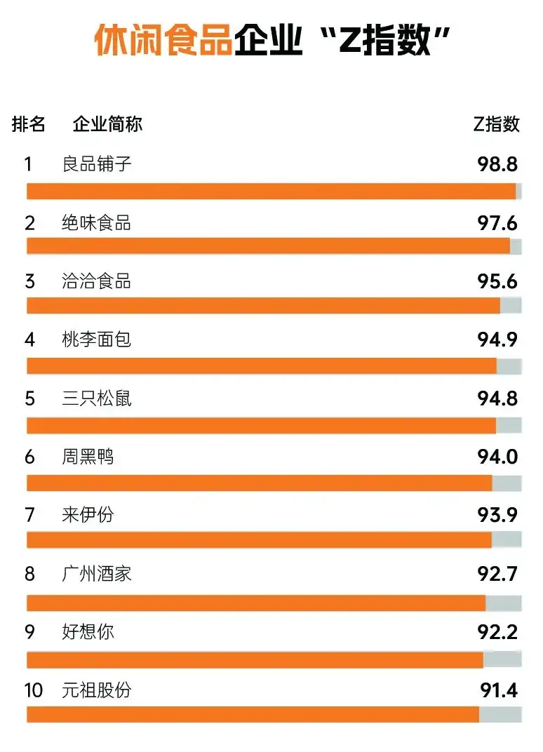在休闲食品领域,良品铺子企业“Z指数”位居榜首,达到98.8。据悉,良品铺子采用以顾客需求为导向、为顾客创造价值的产品策略,向健康型、功能型、方案型产品方向升级,逐步构建新的产品矩阵。今年上半年,公司针对儿童、健身人群、爱美人士、上班族、企事业单位等人群的细分场景需求,分别推出了儿童零食、健身零食、胶原糖果零食、早餐晚餐代餐、商务送礼等多类产品。