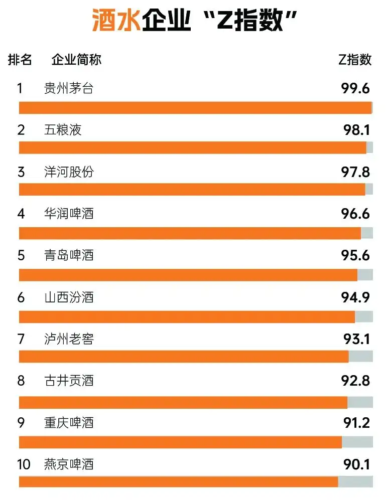 五粮液企业“Z指数”紧随其后,为98.1。据悉,五粮液根据生产工艺特点开发了五粮春、五粮醇、五粮特曲、尖庄等品类齐全、层次清晰的五粮浓香产品,满足了不同层次消费者的多样化需求;同时持续优化渠道运营,传统经销渠道、直销团购渠道、创新渠道分工明确、互为补充,直销渠道占比持续提升,数字化赋能智慧营销。