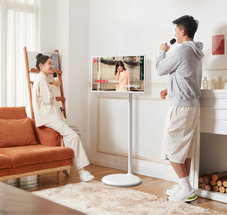 对于日常追剧,痛点之一便是设备的使用不便。如平板需要手持及手动操作,电视或投影仪则受空间限制很难移动,造成诸多使用限制。添添闺蜜机突破创新,在底部隐匿5只万向滑轮,可丝滑移至卧室、厨房、餐厅、洗手间等各个家居空间;屏幕支持20厘米高度升降、25度俯仰调节和左右90度旋转,用户无论站着坐着躺着,都能找到最舒服、最佳的使用角度;同时配备大容量电池,不插电也可长时间自如使用。此外,为满足用户对精致居家生活的追求,添添闺蜜机采用极简造型,尽显轻奢高级。静置时也可化身精美艺术品,全面适配现代潮流家装风格,和谐自然。