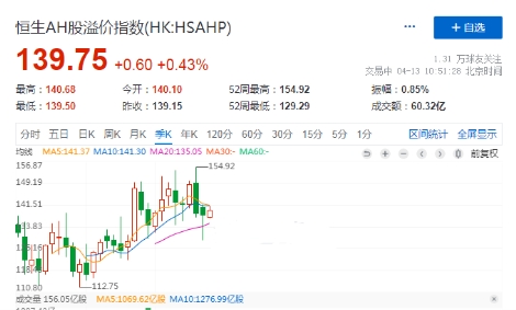 (恒生AH溢价指数显示,AH两地上市的公司中,近5年A股普遍较H股溢价40%左右)