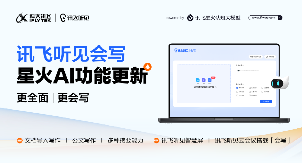 “讯飞听见会写”是讯飞星火大模型的首款个人示范软件应用,只需要将文件导入网站,AI就可以对文件内容分析,并根据用户需求总结会议纪要、编写新闻稿件、编写品宣文案等。本次产品更新后,不仅支持音视频格式,更支持文档格式导入。据悉,该功能在文秘、新闻记者群体中大受欢迎,他们只需要将得到的文件内容和记录的片段信息导入讯飞听见会写,即可让AI帮助他们完成会议纪要和新闻稿件的编写。