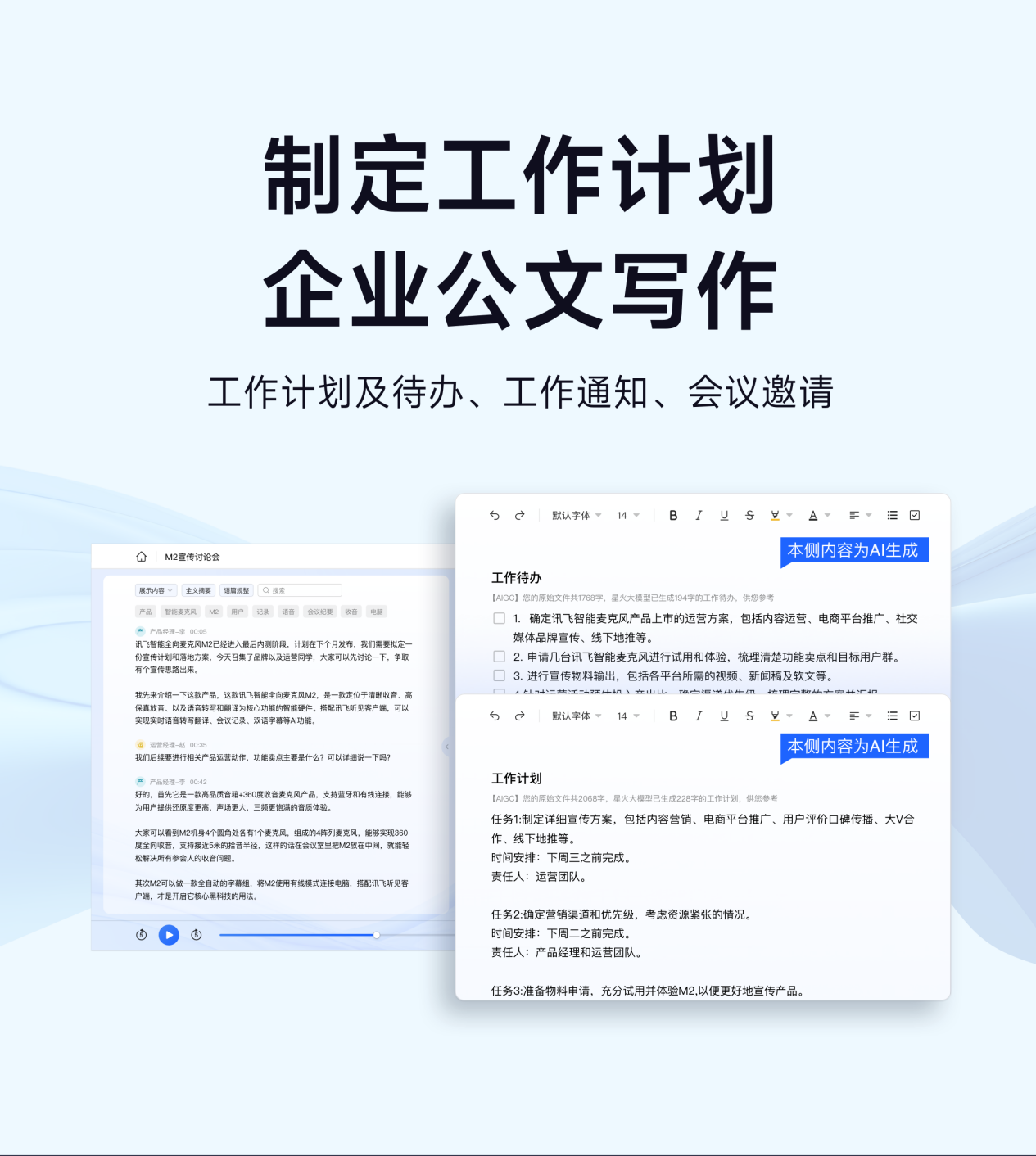 作为国内首批推出远程视频会议的厂商,科大讯飞宣布本次大模型升级后,旗下远程视频会议软件“讯飞听见会议”搭载“会写”功能,可在原来实时中英双语翻译、会后导出音频及文稿基础上,可直接将音频和转写文稿在“会写”中打开,AI可总结成会议总结、工作计划、工作代办、新闻稿件、品宣文案。真正做到了会后立刻“纪要”。