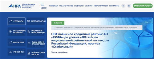 2022年11月11日企发股份公司信用评级提升至BB+(ru)