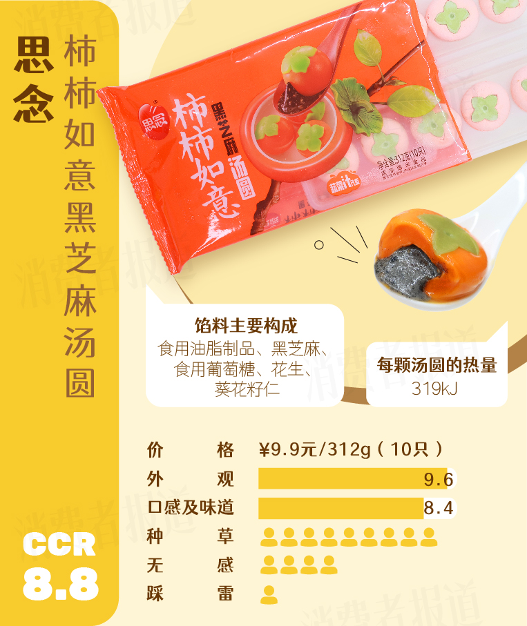 试吃排名01思念柿柿如意黑芝麻汤圆