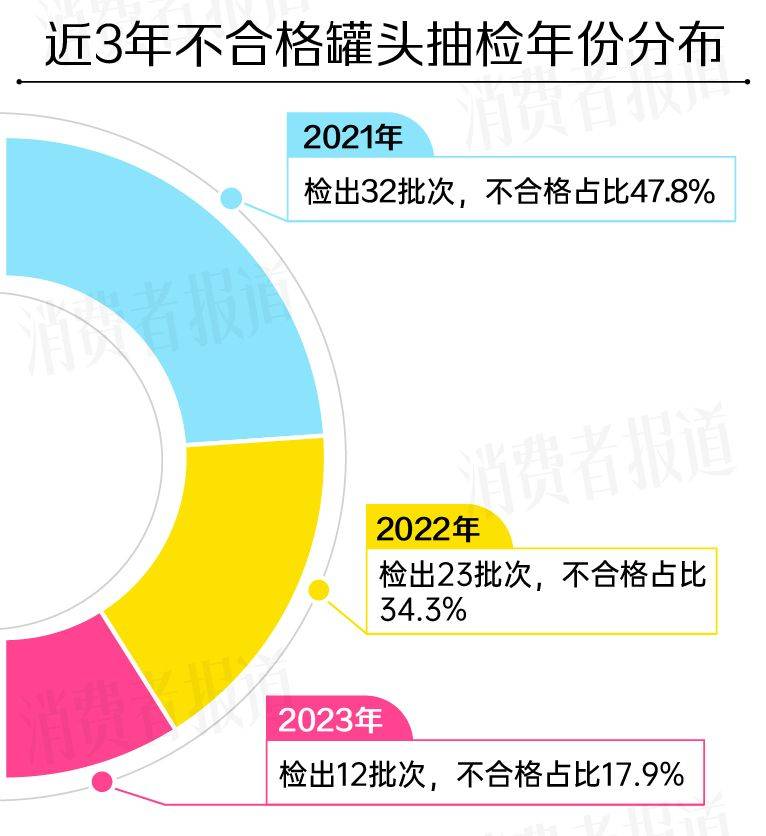2024年4月,《消费者报道》整理了国家市场监督管理总局及省级市场监督管理局等于2021年至2023年近3年公布的关于罐头的质量抽检情况。