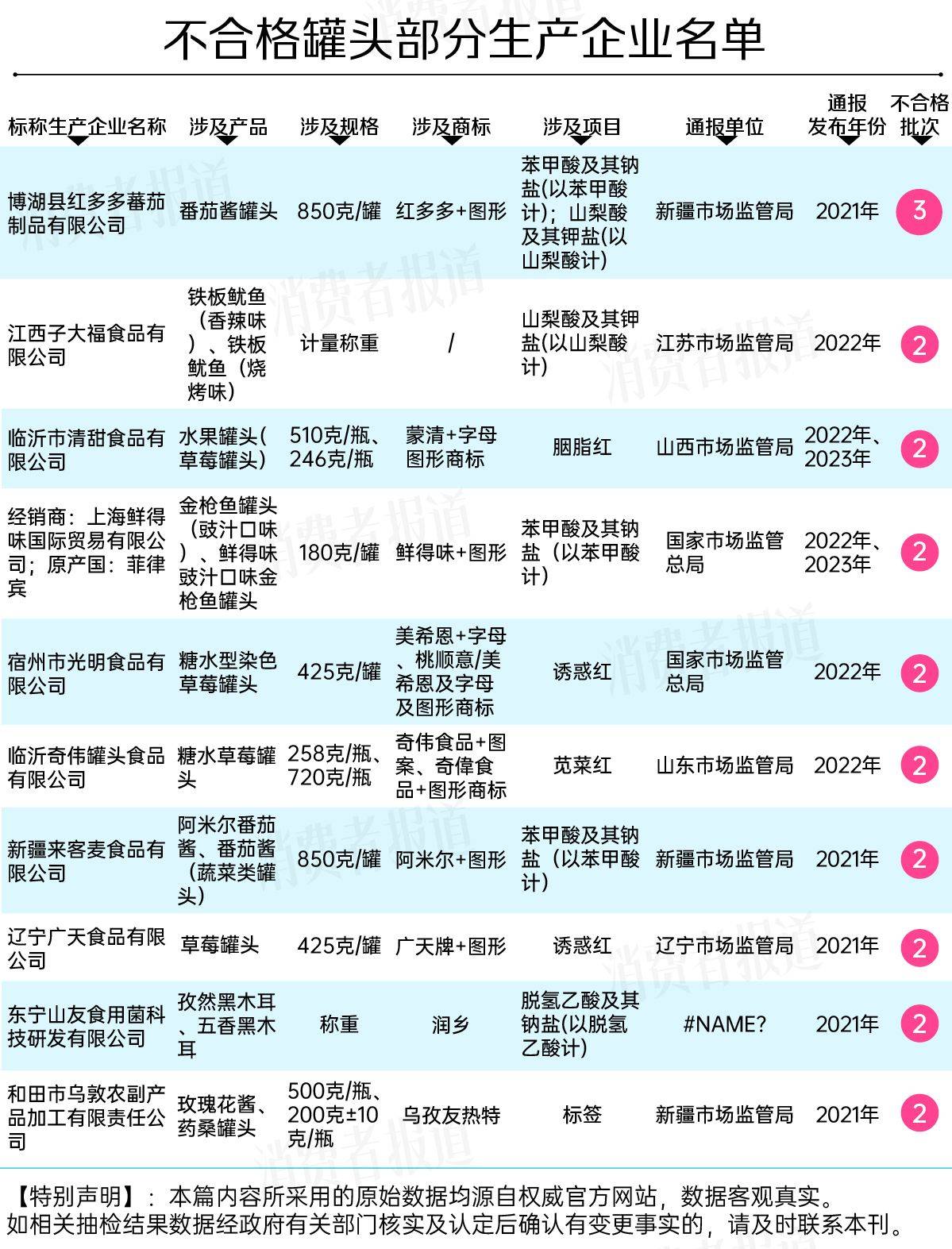 【特别声明】:本篇内容所采用的原始数据均源自国家各级市场监管部门官方网站,数据客观真实。如相关抽检结果数据经政府有关部门核实及认定后确认有变更事实的,请及时联系本刊。
