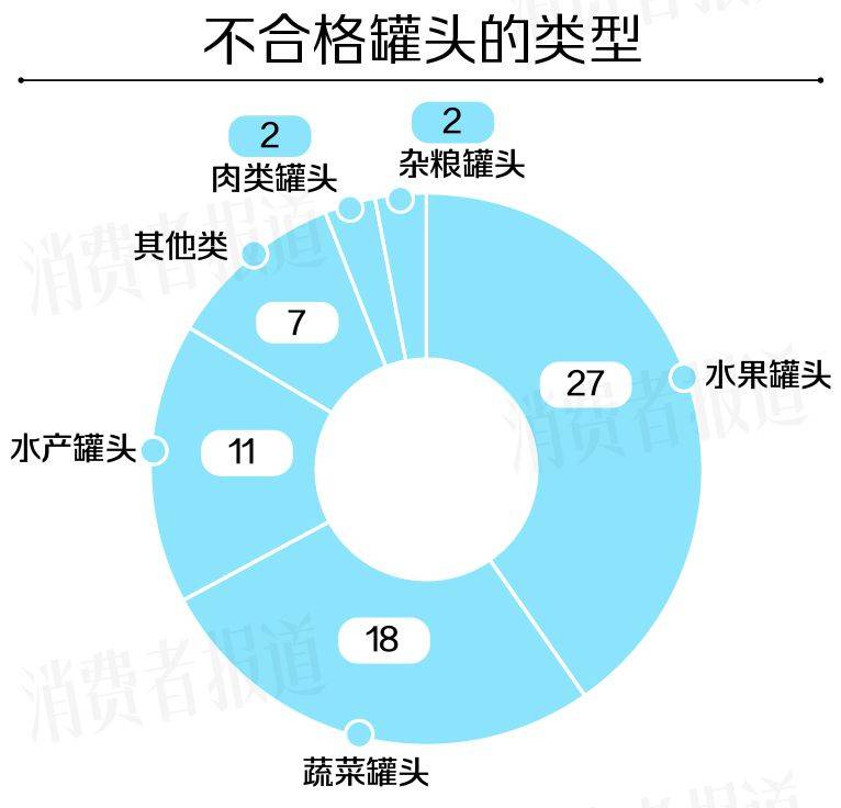 罐头种类繁多,本次抽检数据涉及6类罐头不合格,其中上榜较频繁的是水果罐头、蔬菜罐头和水产罐头。