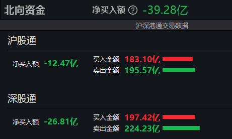 北向资金半日净卖出39.28亿元。其中,沪股通净卖出12.47亿元,深股通净卖出26.81亿元。