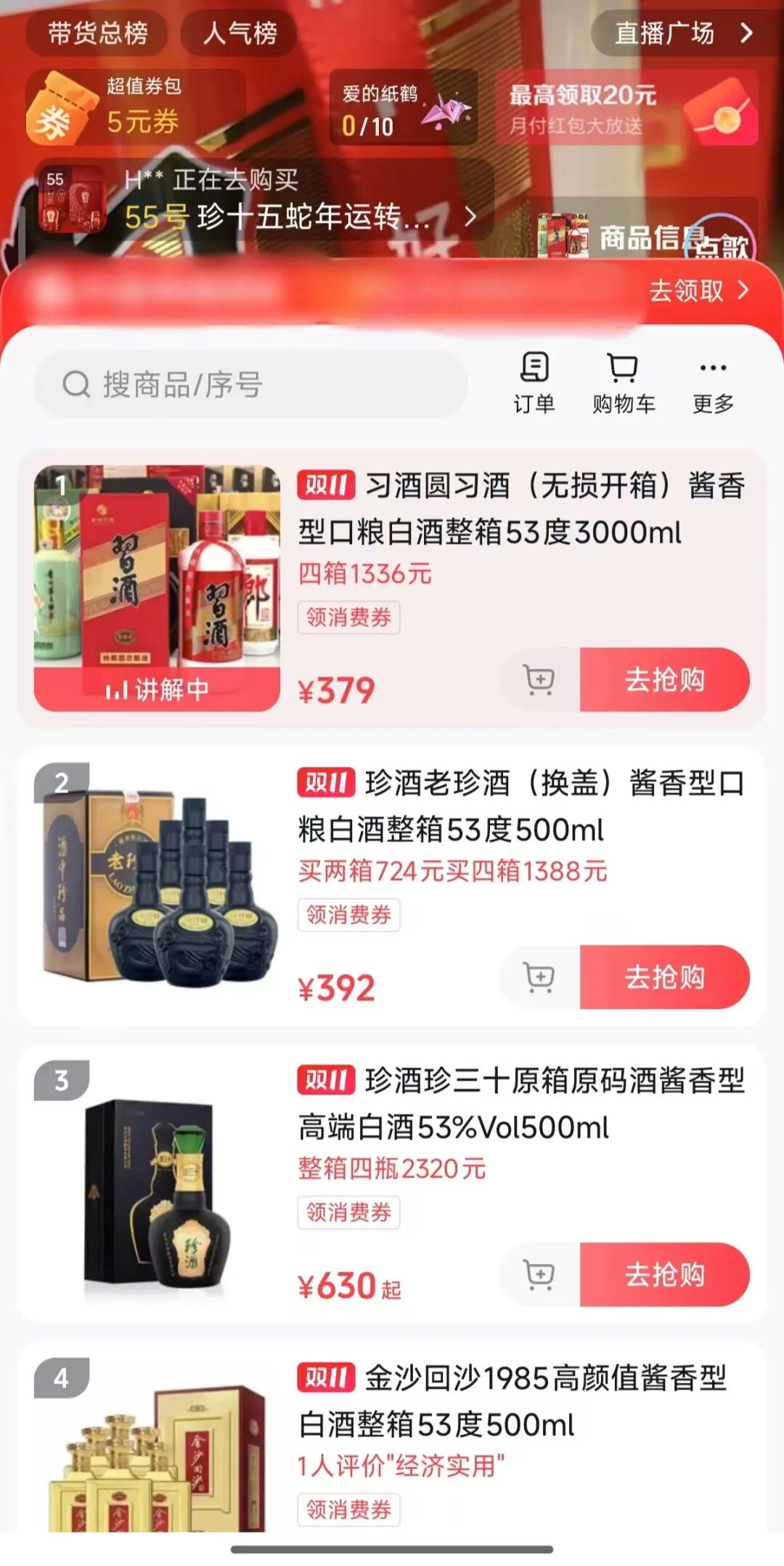 目前,电商平台上,不少商家以低价为诱饵售卖开盖酒。中国酒业独立评论人肖竹青对《消费者报道》记者分析称:“直播间追求‘低价爆品’以吸引流量,开盖酒因去除了促销包装成本,价格可以压得很低,正好契合了‘全网最低价’的直播话术,成为走量的利器。”