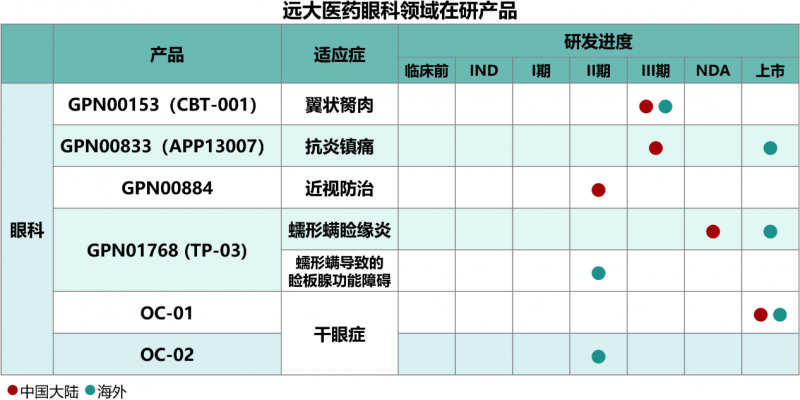 在中国眼科药物市场快速增长的大背景下,远大医药经过多年深耕,已构建起“专业化、全系列、多品种”的创新药物产品体系,储备了治疗“干眼症”、“蠕形螨睑缘炎”、“眼科术后抗炎镇痛”、“翼状胬肉”和“近视”等多款全球创新产品,稳步提升公司在眼科领域的市场地位。