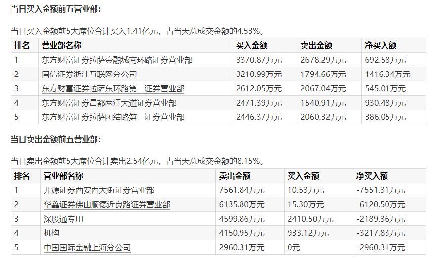 11月4日龙虎榜显示,买入席位多家东方财富拉萨营业部上榜,体现散户参与热情较高。