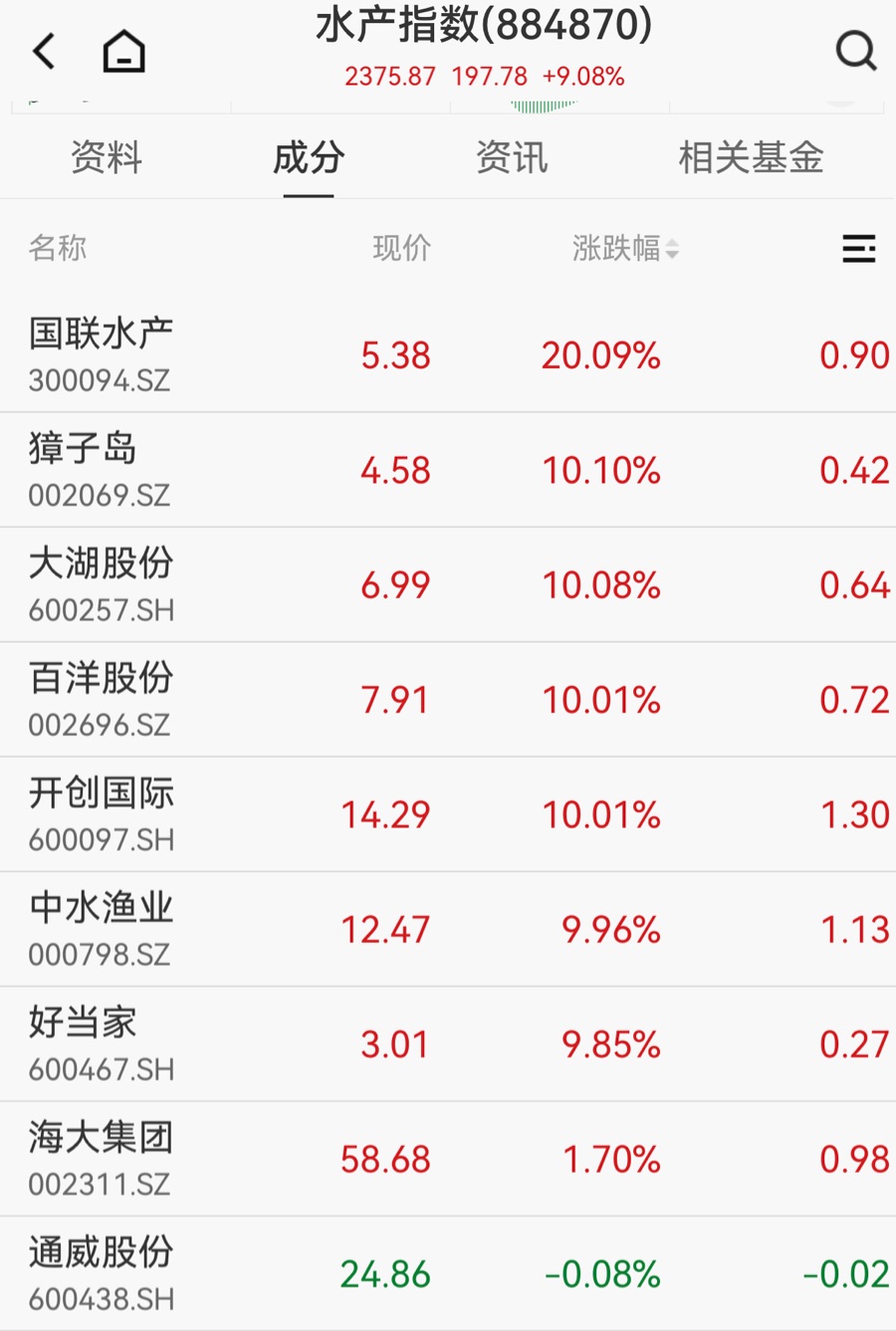 (原标题:水产股集体爆发,国联水产20cm涨停)