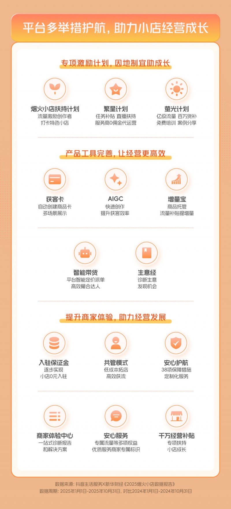 近期,抖音生活服务推出六项商家扶持措施,提升广大商家尤其是中小商家的经营体验,助力以烟火小店为代表的线下经济更好发展。