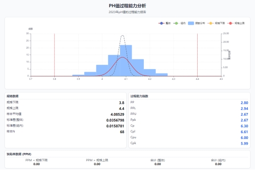 平台完美复现并优化了Minitab中所有常用的质量管理图表。无论是用于监控过程稳定性的运行图,还是用于定位关键问题的帕累托图,或是用于能力分析的过程能力分析图,其算法精度、图表呈现的专业度均达到国际一流水平。同时,我们针对国内用户习惯,优化了操作流程,界面更简洁,可基于质量分析图表一键生成质量回顾报告(word版本),大大降低了使用门槛。