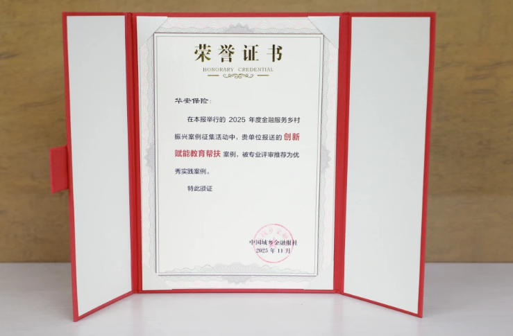 近日,由《中国城乡金融报》发起的2025年度“金融服务乡村振兴”案例征集活动评选结果揭晓,华安保险报送的《创新赋能教育帮扶》案例,荣获“金融服务乡村振兴优秀实践案例”。这是我司学贷险案例连续第二年获此殊荣,充分体现了华安保险在服务国家乡村振兴战略中的持续创新与积极贡献。