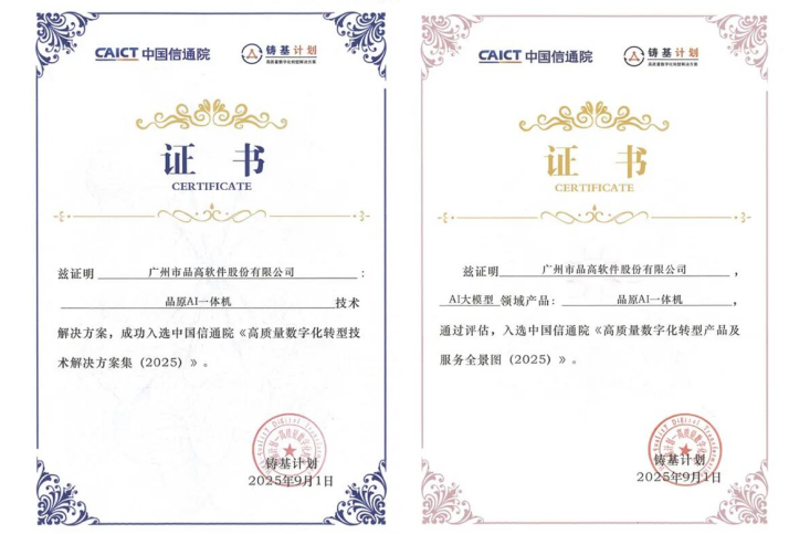 近日,中国信通院正式发布了2025年“铸基计划“的多项工作成果。经过多轮调研与评选,品高股份凭借“品原AI一体机”产品成功入选《高质量数字化转型技术解决方案集(2025)》(下简称“方案集”),并在“AI大模型“”人工智能“和”数据中心与算力底座“三大领域收录于《高质量数字化转型产品及服务全景图(2025年上半年度》(下简称“全景图”)。